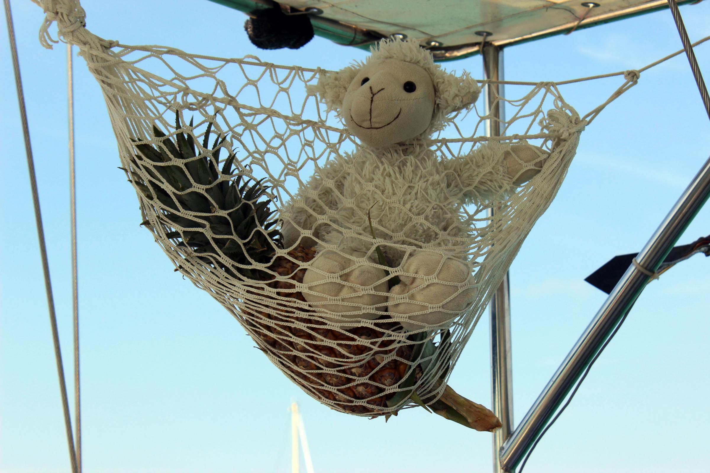 Am Anker stellen wir dann auch noch fest, dass sich das Spinnakerfall (Leine zum Setzen des Ballonsegels) irgendwann und irgendwie selbst befreite, sich vom Hauptmast über den Besanmast legte und sich dabei mit der Flaggenleine weiter achterlich verhedderte – dabei hatten wir grosses Glück, dass sie nicht in die Windflügel des Windgenerators geraten war.