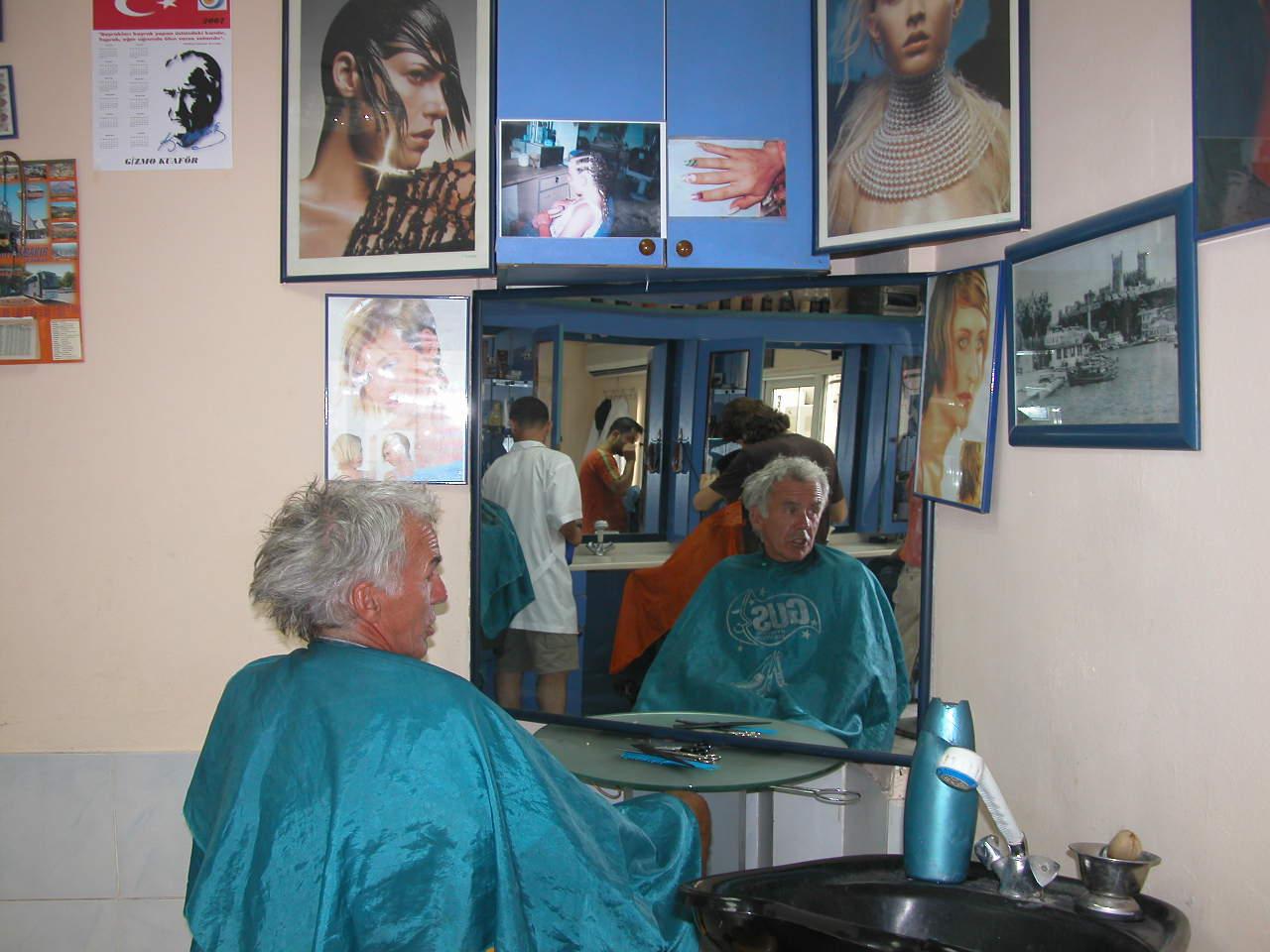 Wegen 2 monatigem Schönwetter ohne Regen, dafür immer um 34° C / Wasser 26° C hatte ich langsam Mühe mit meinem Pelz… ich wage den Schritt zu einem türkischen Coiffeur – der feine Apfeltee, den ich dort bekomme macht mir Mut.