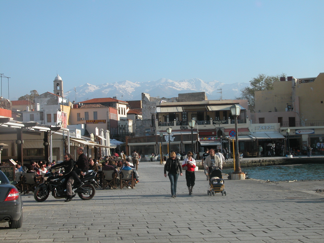 schön, 18°C, neue Heckleuchte (Folge des Sturmes) montiert, 140 Meter Leine (26 Kg) und diverses eingekauft, Wasser gebunkert, Hafengebühr beim „speziellen“ Polizisten bezahlt – gibt sich Mühe einen strengen Eindruck zu machen – überlistet sich aber selbst. Geniessen das schöne Chania in der Abendsonne bei Kaffee und laden die Aussis Peter +Rae, die von einem Autoausflug zurückgekehrt sind, zum Nachtessen ein.