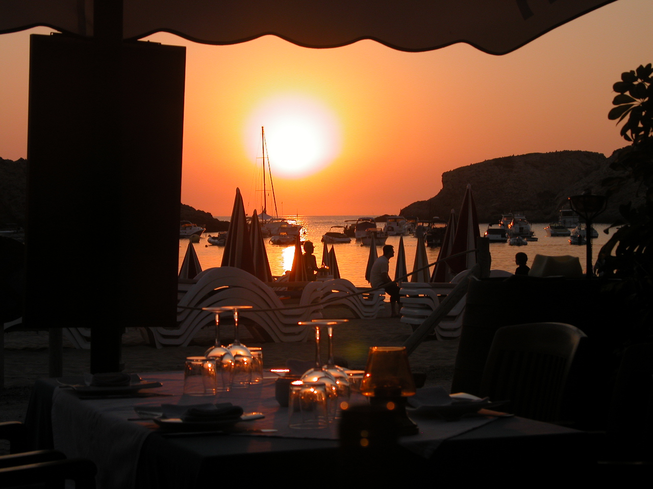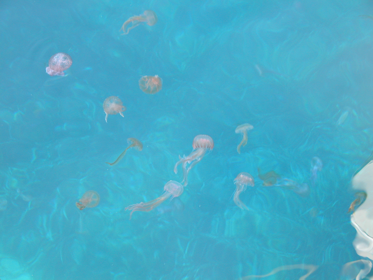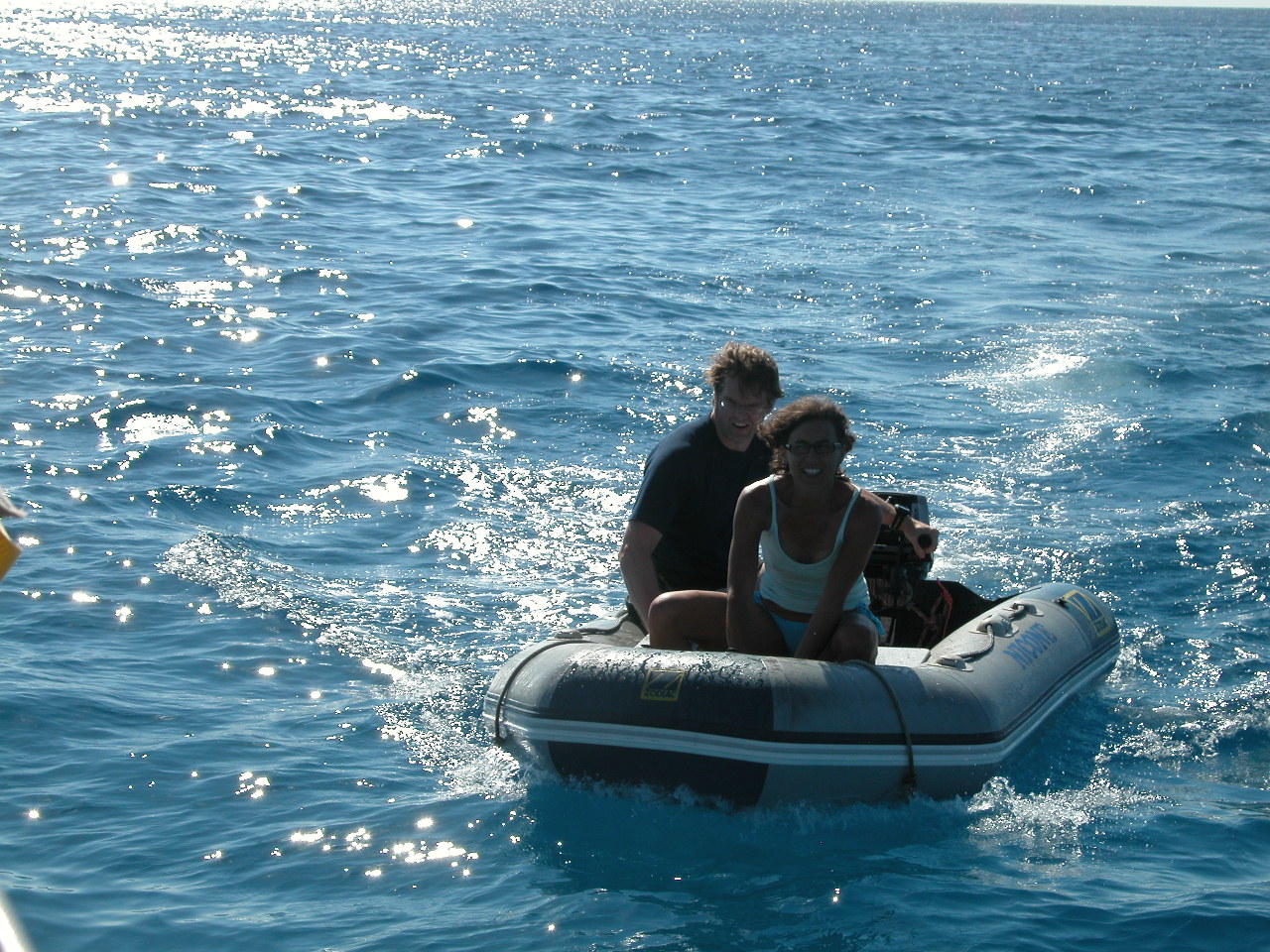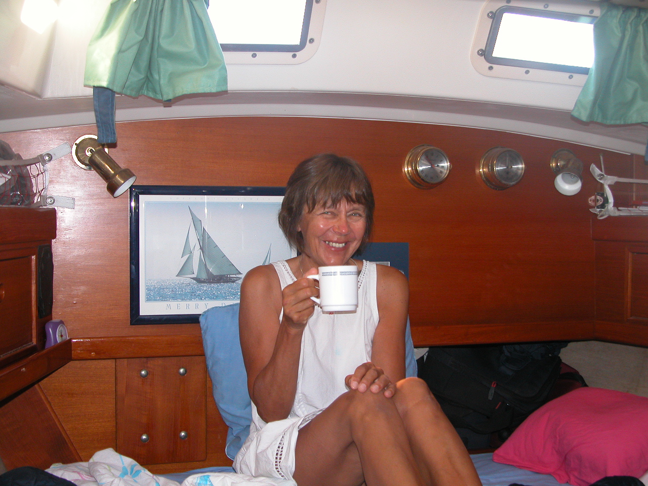 Tagsüber leert sich die Bucht um etwa 50 % der hier liegenden SY und füllt sich abends wieder. Es gibt dann um die 40 Ankerlieger. Ein paar davon vollführen dabei fragwürdige Ankermanöver bei der Anfahrt, Wahl des Platzes und beim Ankern selbst. Etwas kritisch kann es schon werden wenn solche in der Nähe sind – cool und freundlich bleiben. Aber wir können ja auch Fehler machen, z.B. liess ich den Motor etwas laufen um die Batterien zu laden ohne zu bemerken, dass das austretende Kühlwasser das Dingi abfüllte, das eben an der Stelle angebunden war. Als ich von einem Nachbarn aufmerksam gemacht wurde, war es bereits mehr als halb gefüllt…