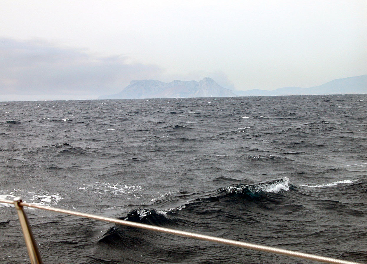 Bereits einen Tag zuvor konnten wir den Fels von Gibraltar und etwas im Dunst den höheren Felsen „Jebel Mussa“ in Marokko auf der Südseite der Seestrasse von Gibraltar sehen.