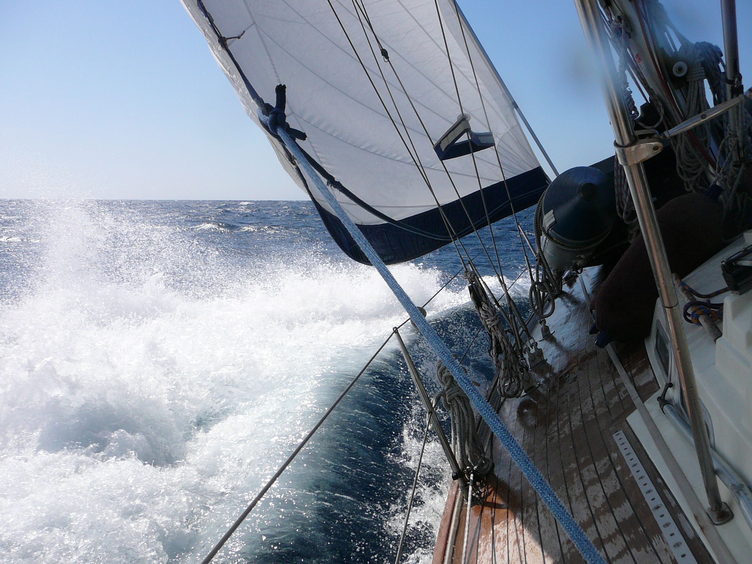 Wir freuen uns, dass es sofort etwas mehr Wind als angesagt gibt. 3 Stunden später muss das Gross 2 x und weitere 2 Stunden später das Gross 3-fach und die Genua