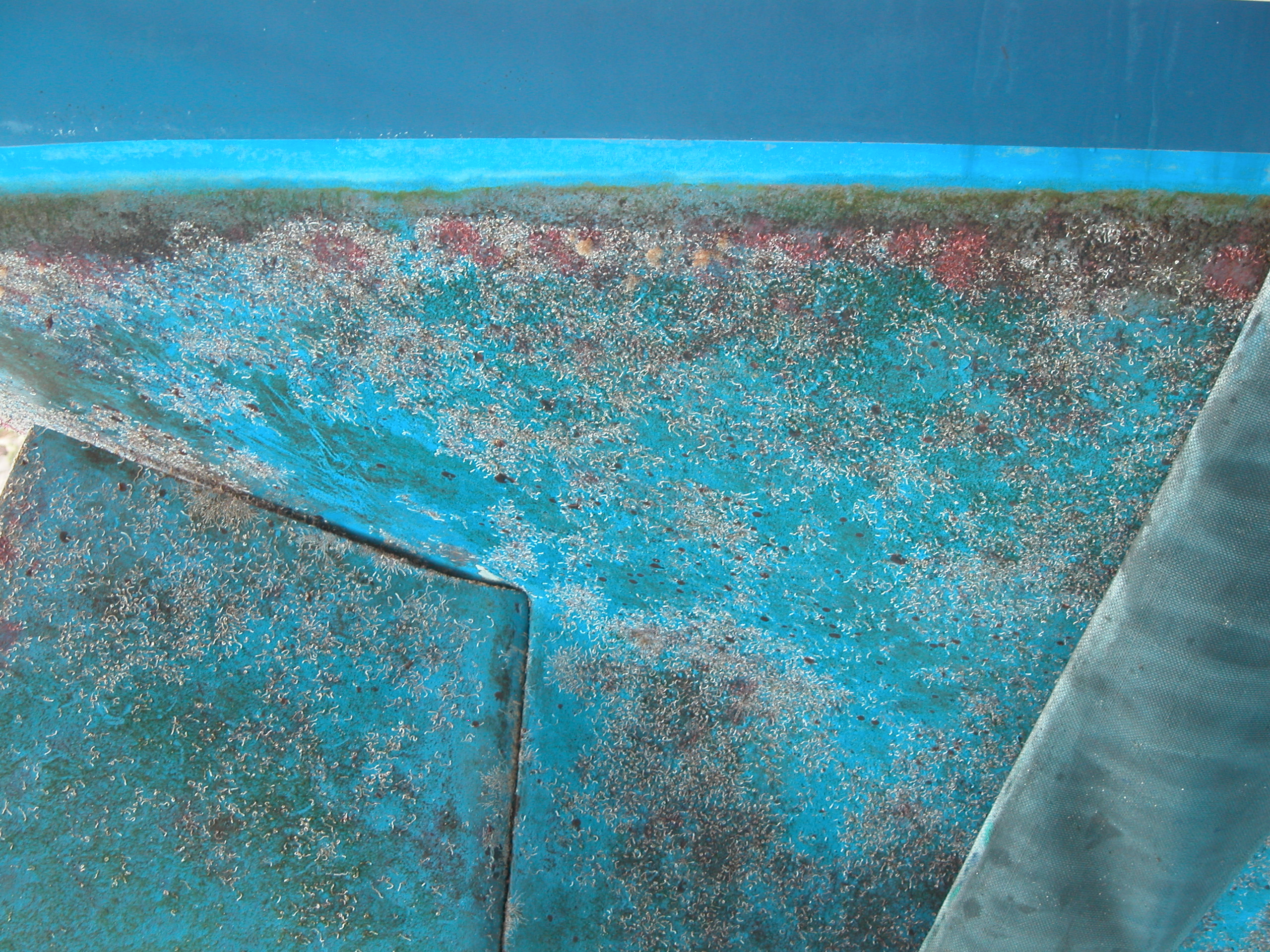 weil das Boot sowieso ausgewassert werden musste, haben wir bereits nach 8 Monaten das Unterwasser erneut gestrichen – es drängte sich auf, da wir der Türkei bei der letzten Bemalung offenbar etwas minderwertige Farbe erhielten und sich bereits viele Kalkwürmer angesetzt hatten.