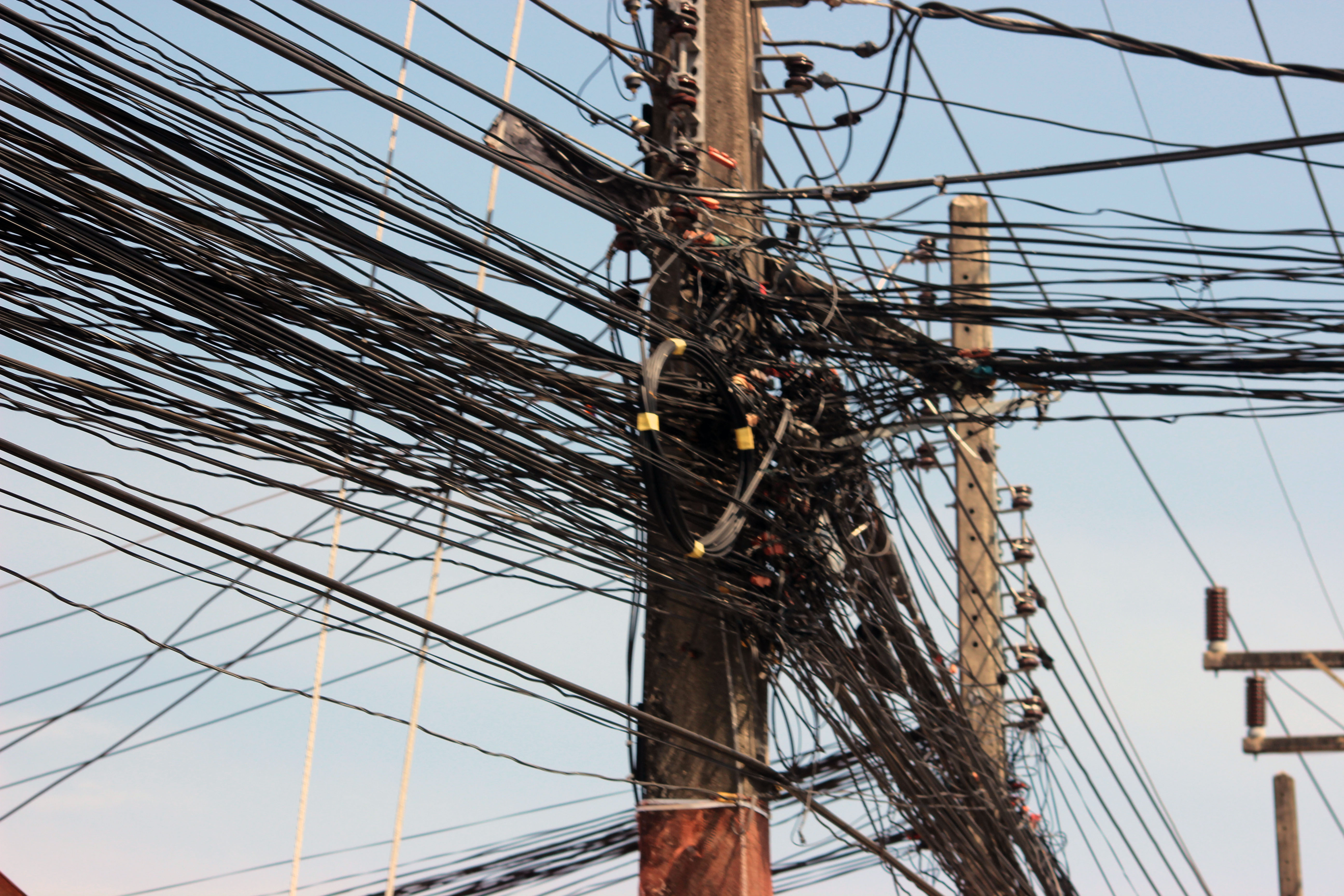 auf der ganzen Insel sind Stromleitungsmasten wie diese vorhanden – offenbar gibt es Elektriker, die sogar das System kennen.