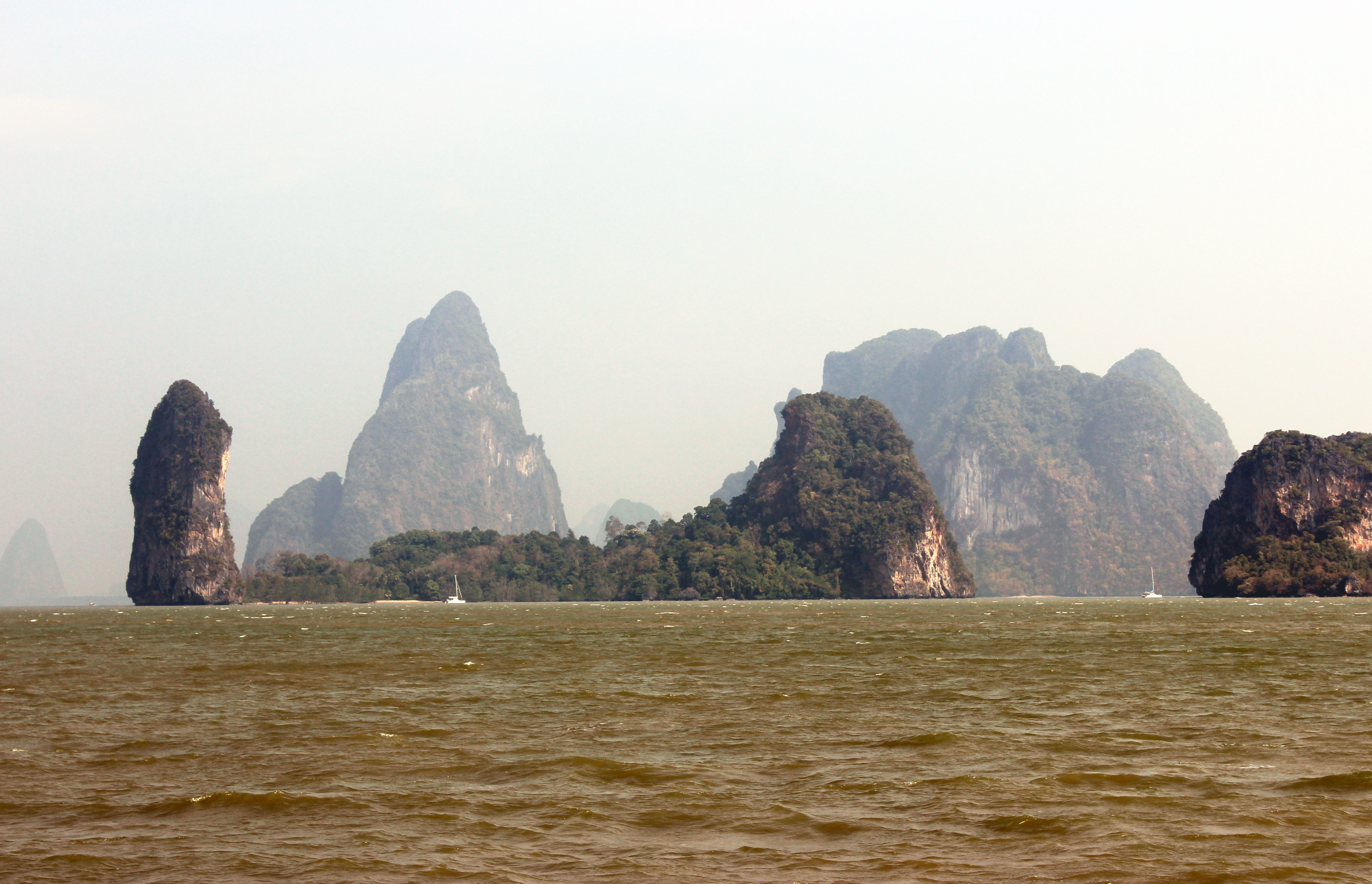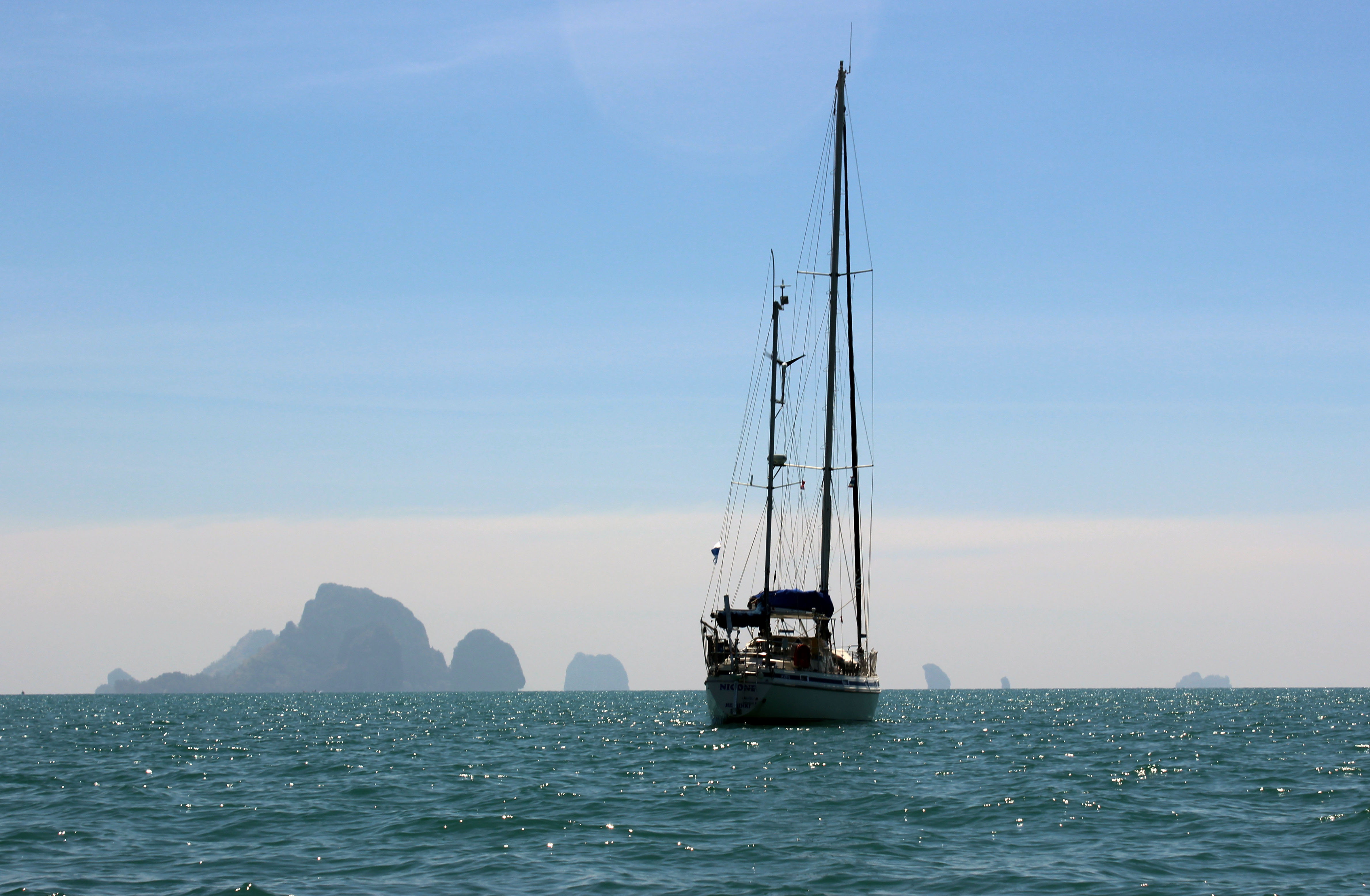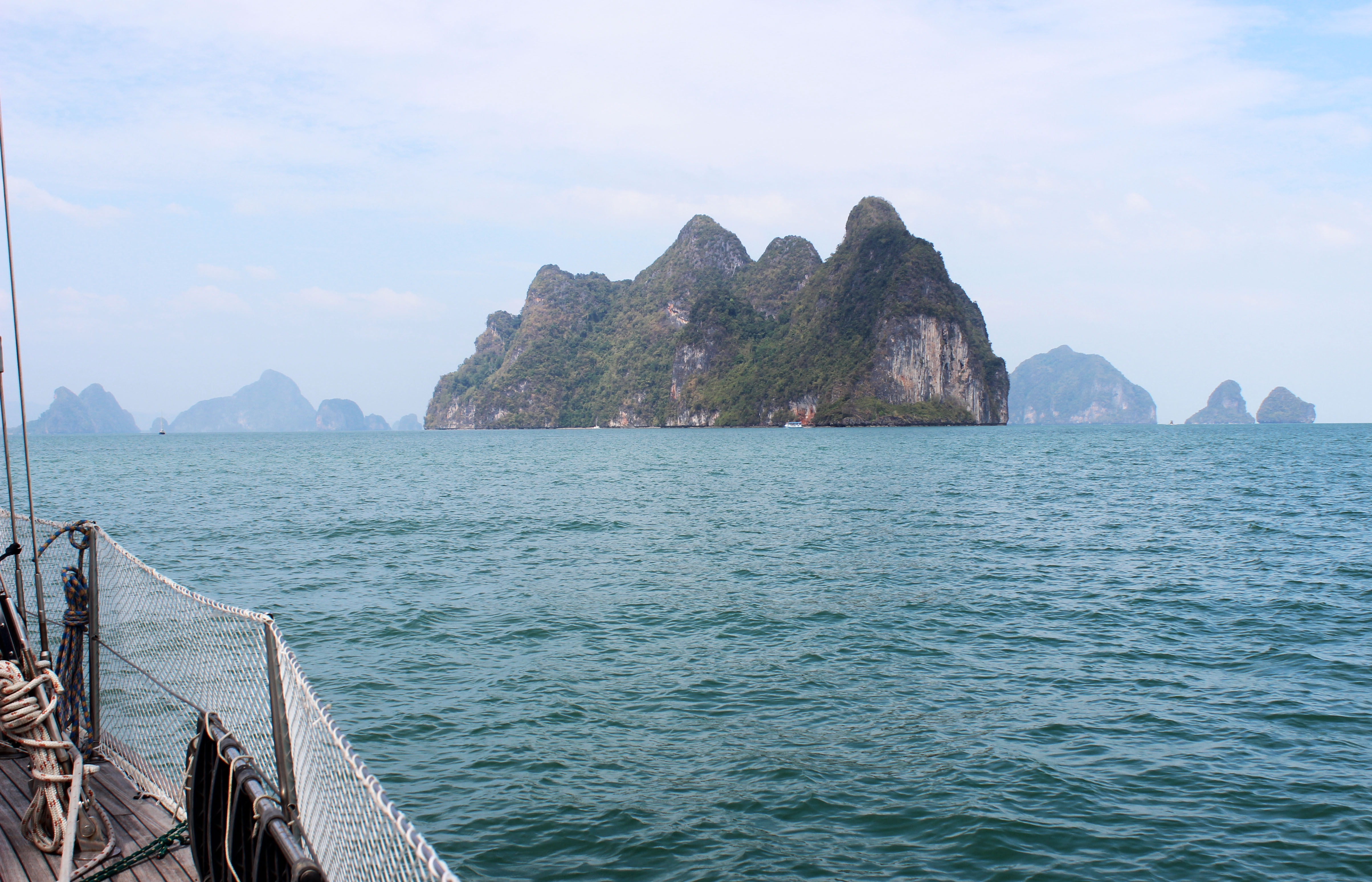 Wir segeln und motoren – oft kein Wind über die Mittagsstunden – noch weiter östlich nach Krabi am Festland, dann wieder nach Ao Chalong dem Ort zum Ausklarieren