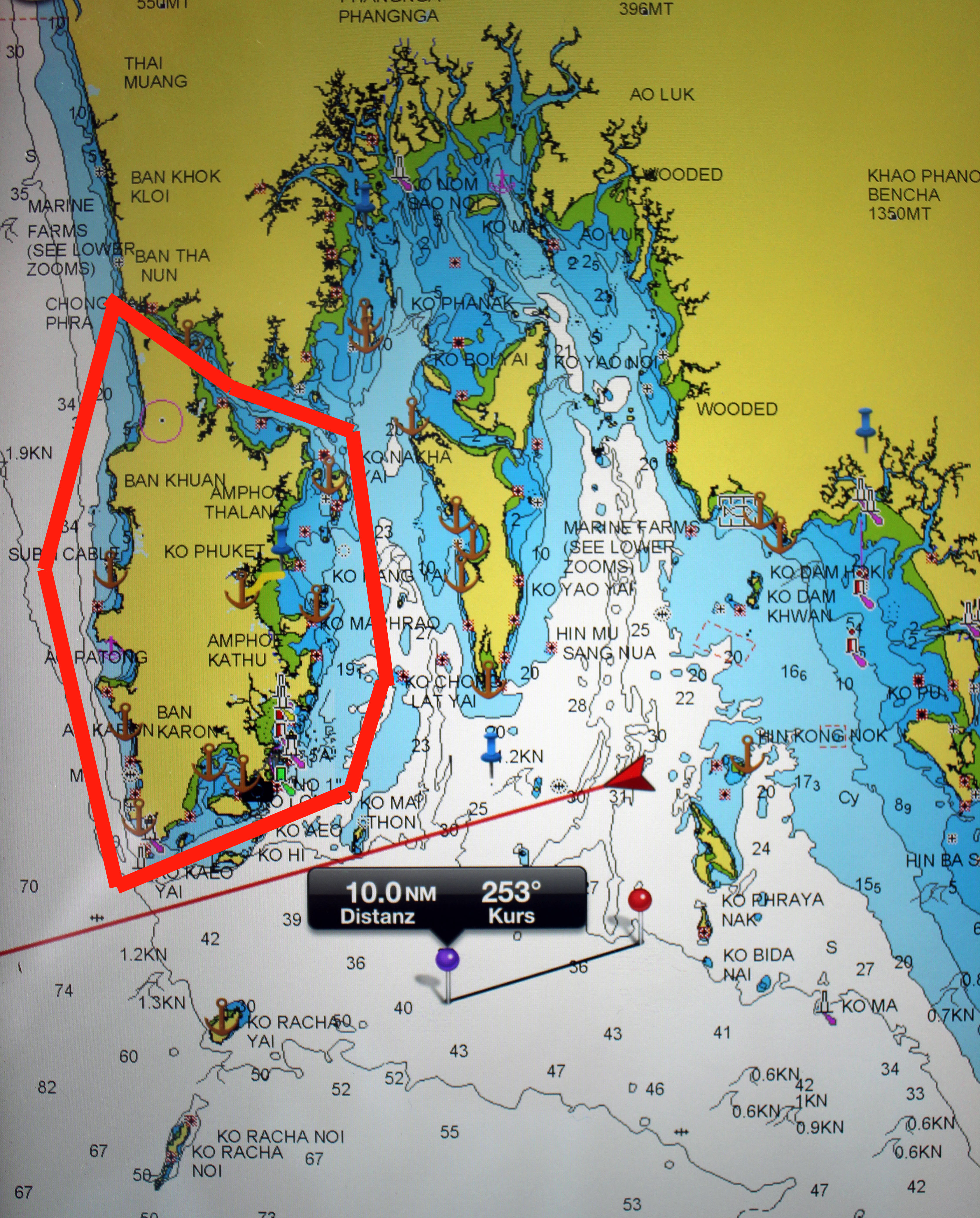 Am 11. Dezember verliessen wir Langkawi / Malaysia und segelten bei hervorragenden Bedingungen in einer Tag-Nacht-Fahrt direkt nach Phuket / Thailand. Etwas Bedenken gab es schon während der Nacht, wegen möglichen Fischerei-Einrichtungen… und ja ein Rumpeln an Backbord liess uns aufschrecken, hatte aber keine weiteren Folgen – später zeigte ein Tauchgang, dass es ein paar Strichspuren am Antifouling gab – alles ok.