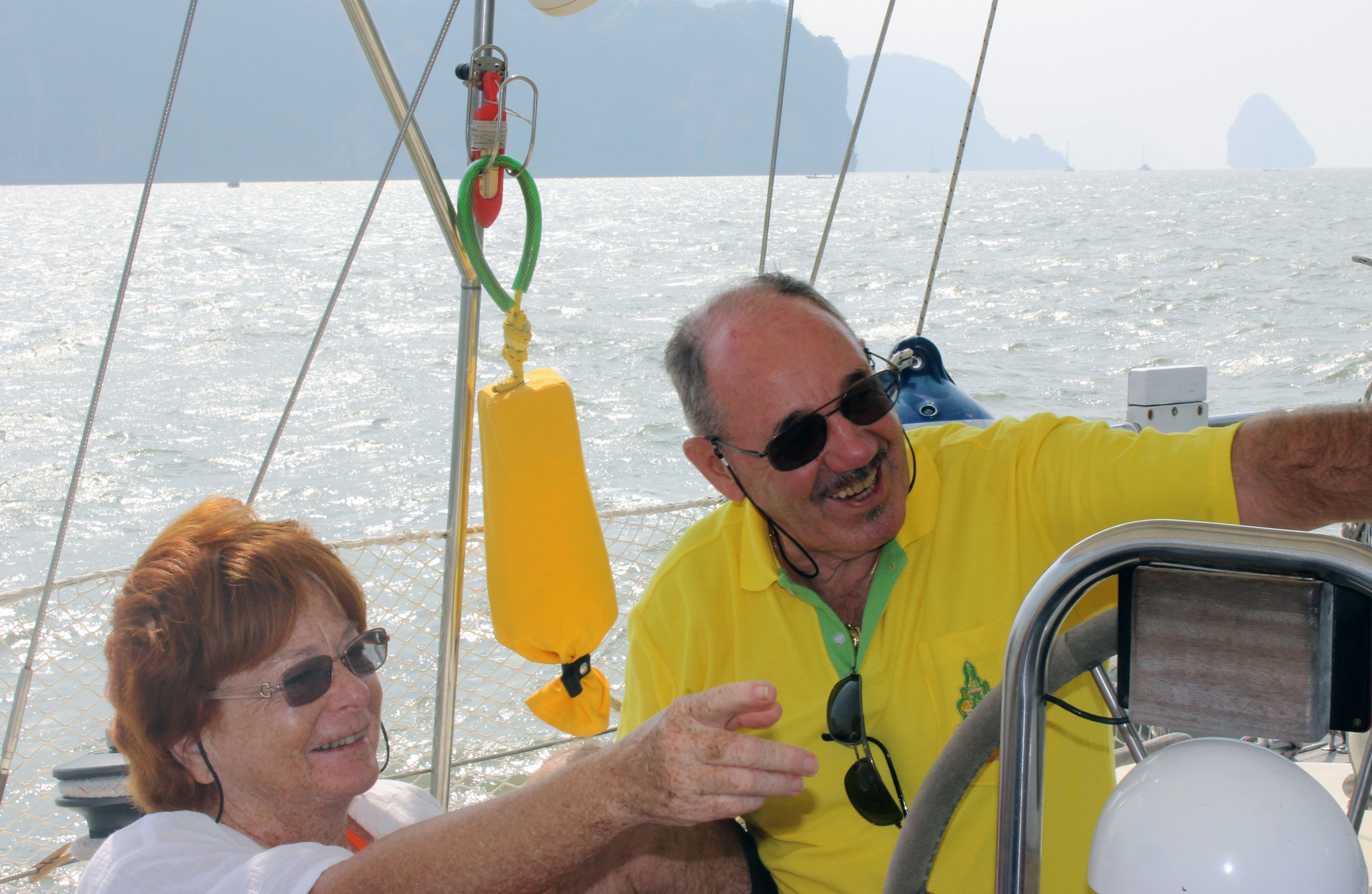 Peter hat schon früher gelegentlich gesegelt – für Margrith ist es eher Neuland, hält sich aber prima auch bei den relativ starken Winden – die Bedenken wegen Seekrankheit waren vergebens.
